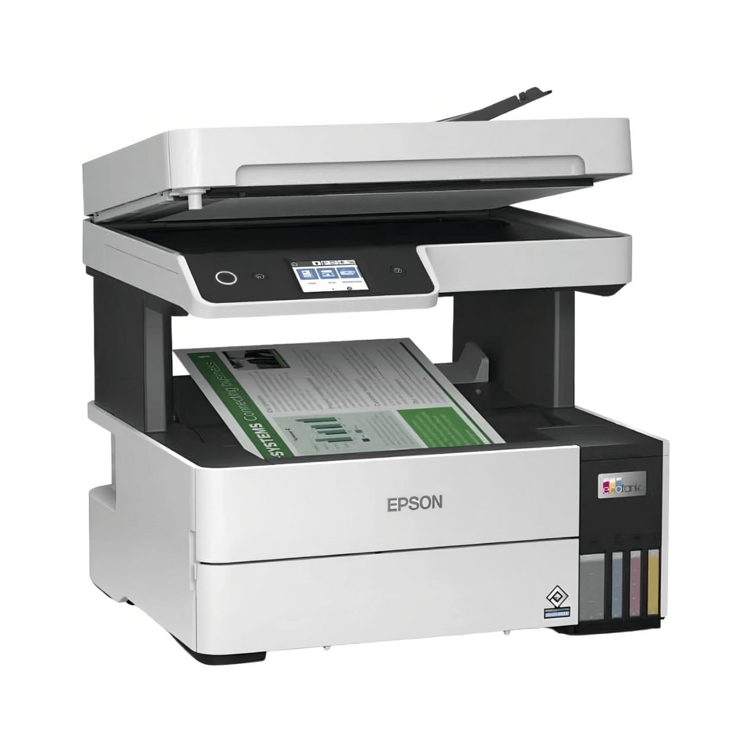 – Alta productividad y ahorro: Las botellas de tinta de reemplazo de bajo costo ofrecen un rendimiento de hasta 7,500 páginas en negro y 6,000 en color, reduciendo la necesidad de recargas frecuentes.