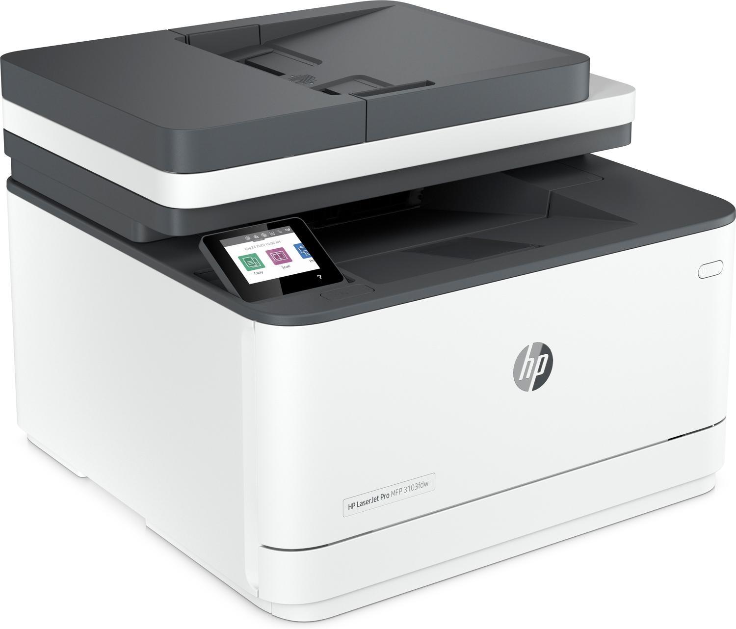 La impresora multifuncional HP LaserJet Pro MFP 3103fdw está diseñada para satisfacer las necesidades de pequeños equipos de trabajo, soportando hasta 7 usuarios de manera eficiente. Este dispositivo láser monocromático ofrece una combinación perfecta de velocidad, seguridad y sostenibilidad, convirtiéndola en una opción ideal para oficinas que buscan optimizar su flujo de trabajo. Con funciones como impresión a doble cara a 35 ppm, conectividad Wi-Fi con recuperación automática y HP Web JetAdmin para la gestión centralizada, esta impresora facilita el día a día en cualquier entorno laboral. Además, el tóner EcoSmart con JetIntelligence ayuda a reducir el consumo de energía hasta en un 20%, sin comprometer la calidad de impresión.